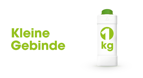 Gebindegrößen: 1kg (0,8kg) - 5kg (4kg) - 10kg (8kg) - 20kg (18kg) - 30kg (25kg)
